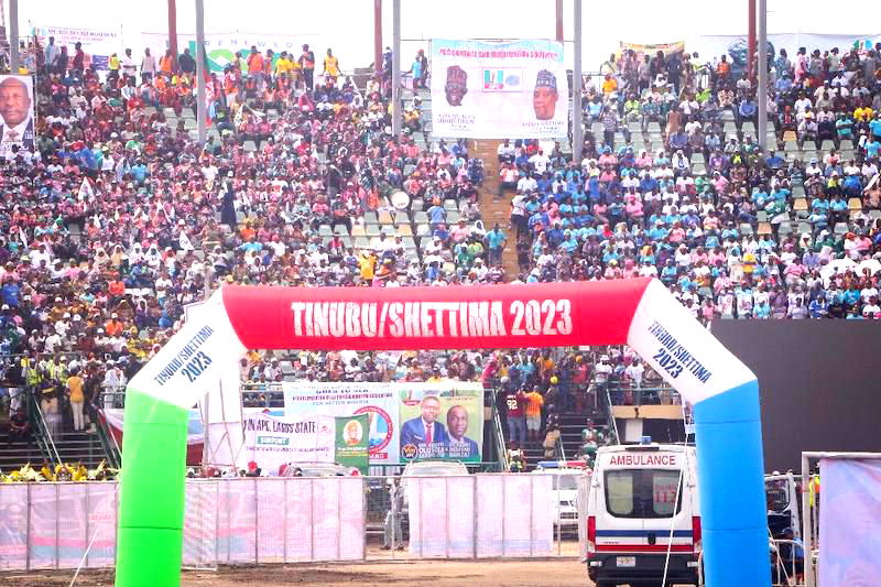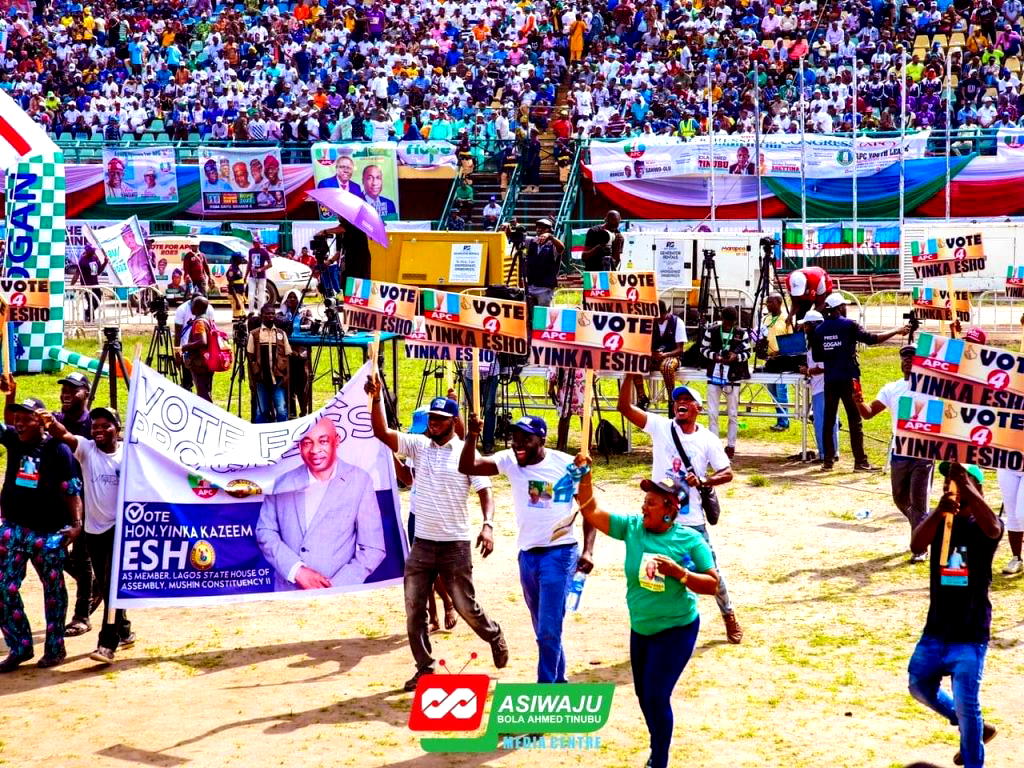 The All Progressives Congress (APC) supporters stormed the Teslim Balogun Stadium, Surulere, Lagos on Saturday for the campaign rally of their presidential candidate, Asiwaju Bola Tinubu.